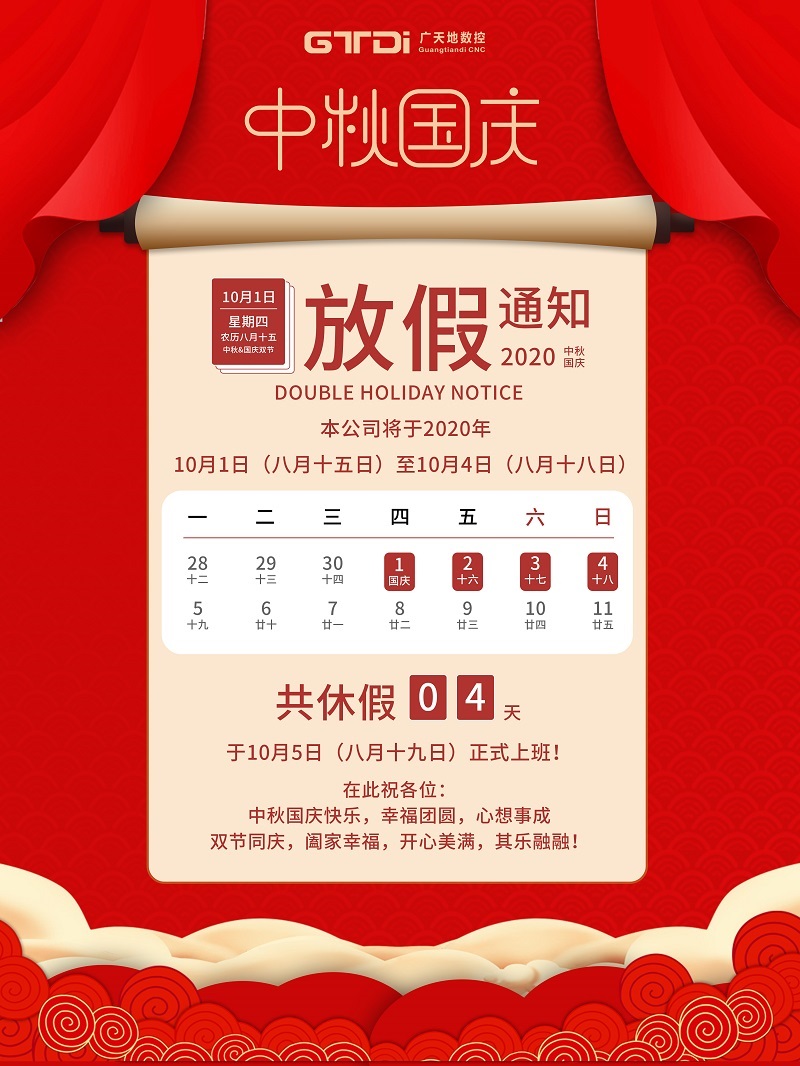 廣天地?cái)?shù)控2020年國(guó)慶中秋節(jié)放假通知