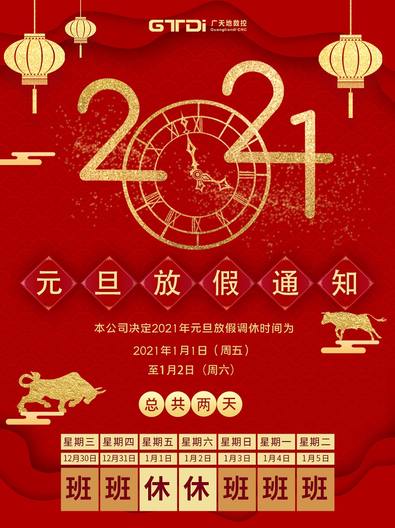 廣天地?cái)?shù)控2021年元旦節(jié)放假時(shí)間安排