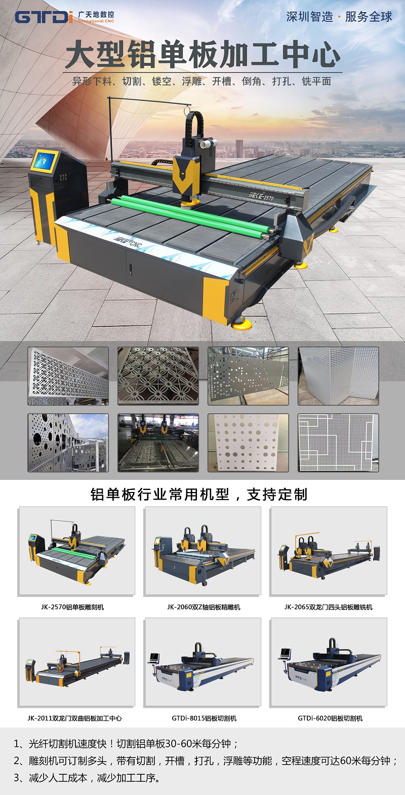關(guān)于鋁單板雕刻機(jī)的價(jià)格的分析,廣天地?cái)?shù)控的介紹就到這里了,大家在選購時(shí)對(duì)于價(jià)格應(yīng)該做到知根知底,但是也不能太過的在意價(jià)格,貪圖便宜往往是大忌,一定要選擇正規(guī)的鋁單板雕刻機(jī)廠家,質(zhì)量與價(jià)格往往是成正比的。