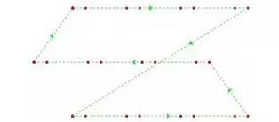 早期的光纖激光切割機(jī)的空程如下圖所示,切割頭要次第完成三個(gè)動(dòng)作:上升(到足夠安全的高度)、平動(dòng)(到達(dá)點(diǎn)B的上方)、下降。