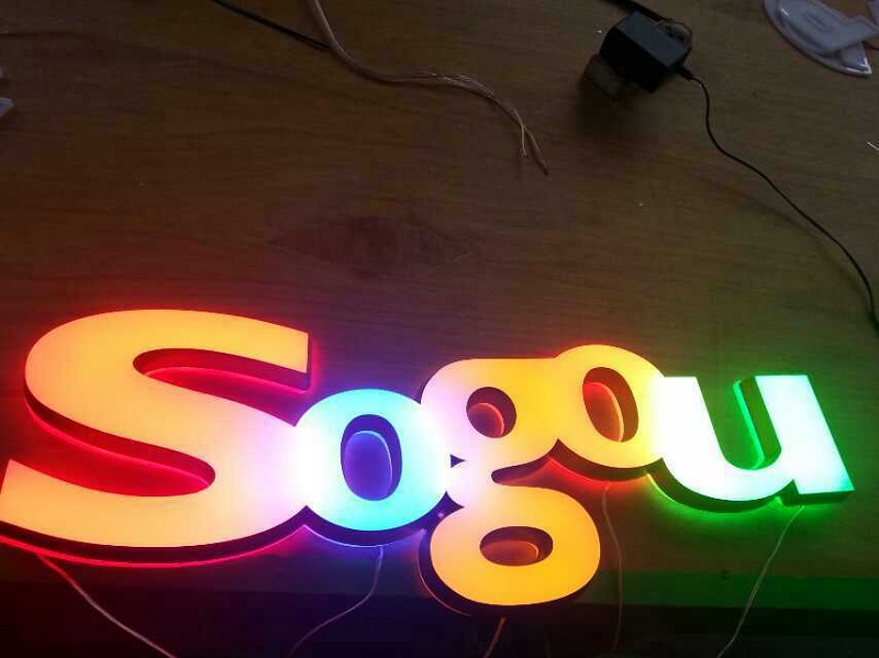 將水晶亞克力板用雕刻機(jī)雕刻成型,然后粘貼打磨,在排上LED光源,然后在字的邊上做油漆處理即可。